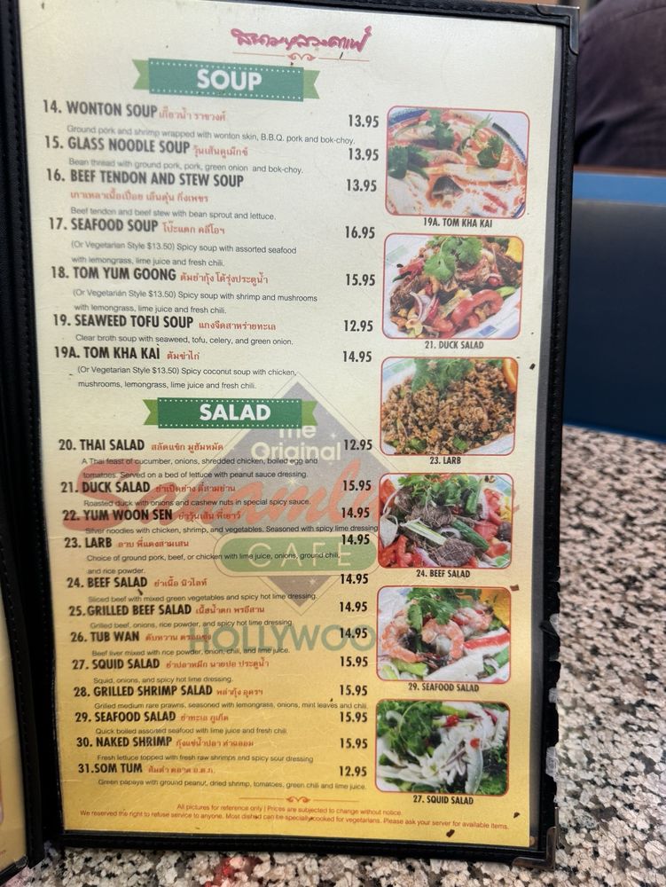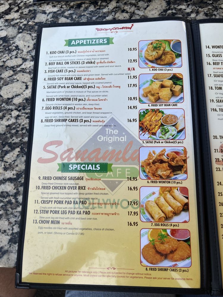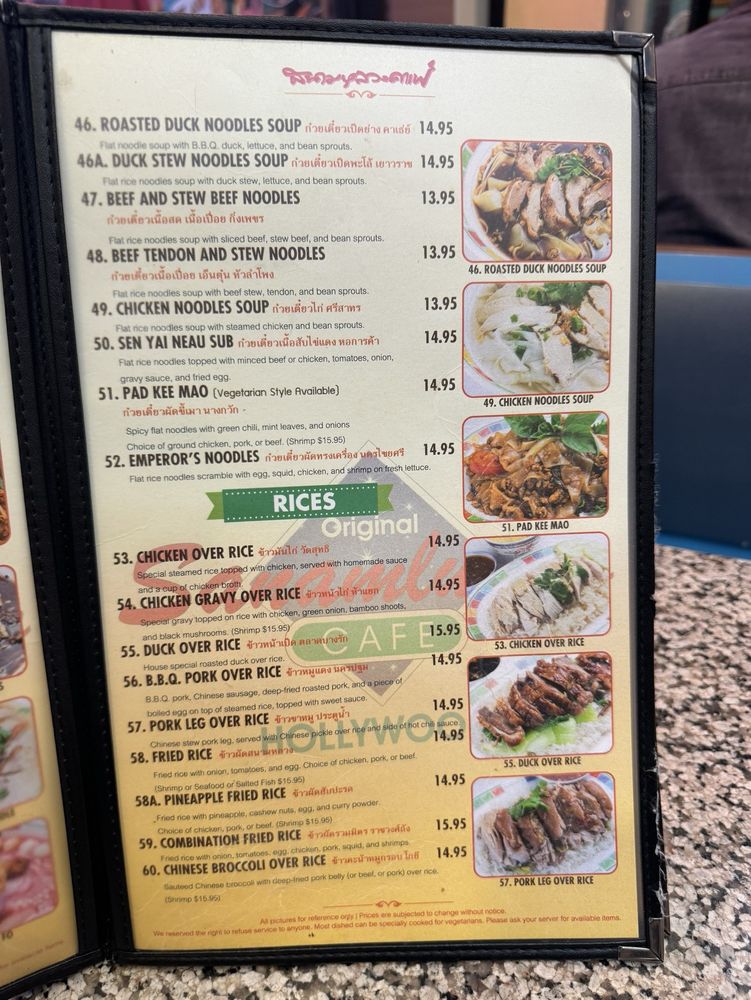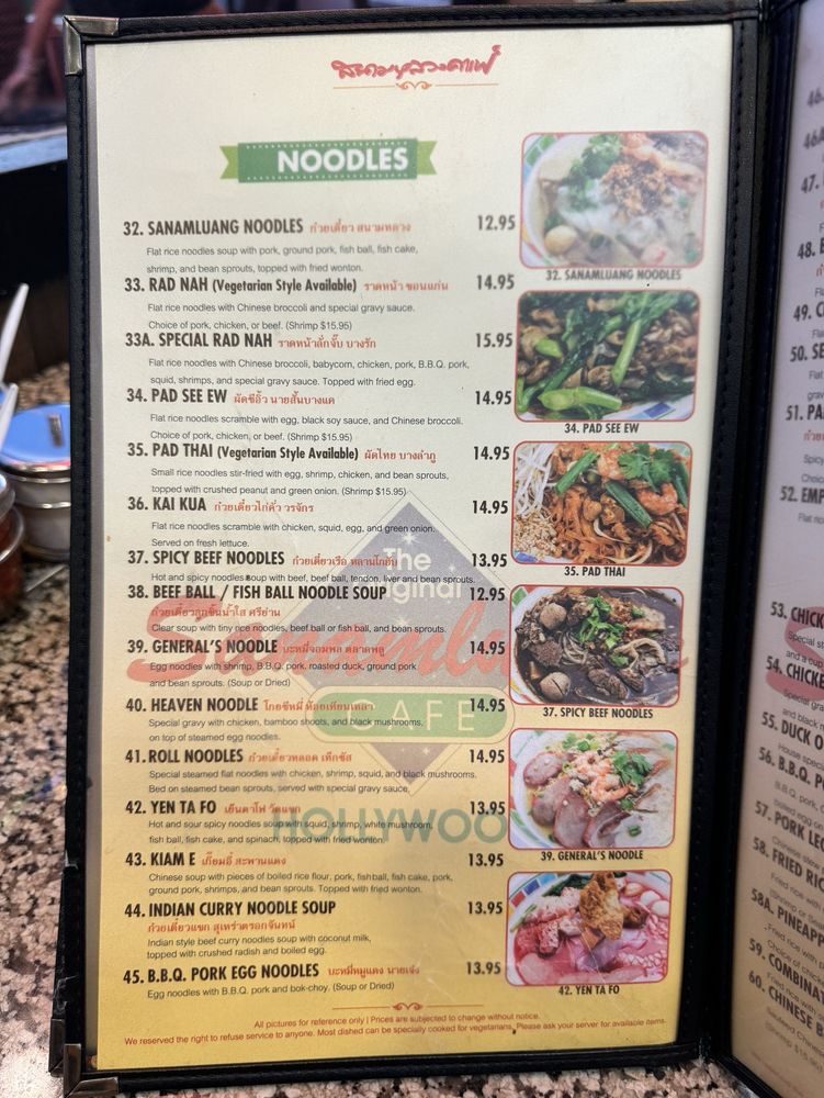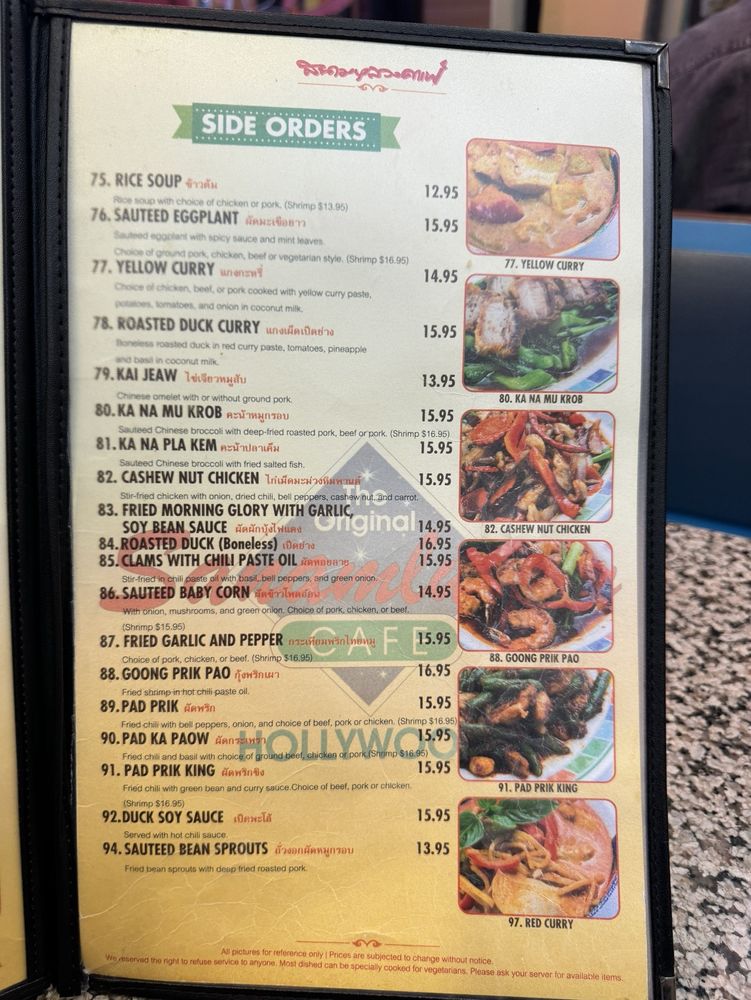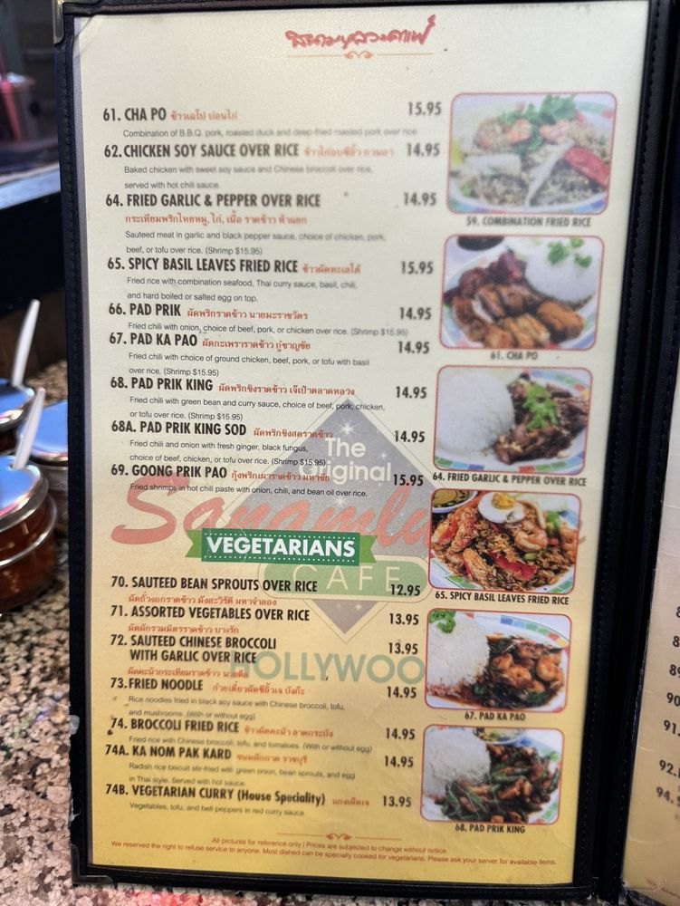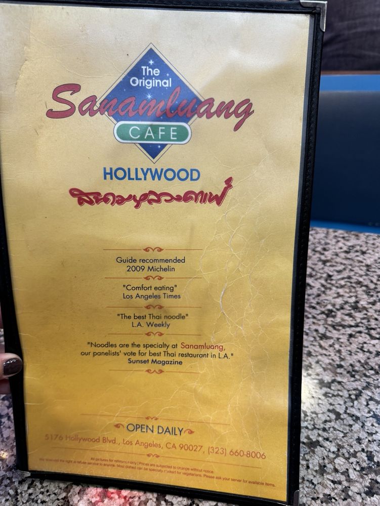 Introducing the menu at Sanamluang Cafe Hollywood, a renowned Thai restaurant in Los Angeles. Located on Hollywood Blvd, this cafe offers a variety of authentic Thai dishes with a modern twist. From the flavorful papaya salad to the mouthwatering Chinese broccoli with crispy pork, every dish is carefully crafted to provide a delicious dining experience. Customers rave about the spicy minced lamb, beef stew noodle soup, and pad Thai, praising the generous portions and rich flavors. The restaurant also offers vegan and vegetarian options, making it a must-visit for all food enthusiasts. With excellent service, cozy ambiance, and a diverse menu, Sanamluang Cafe Hollywood truly stands out as a top choice for Thai cuisine in the heart of Los Angeles.